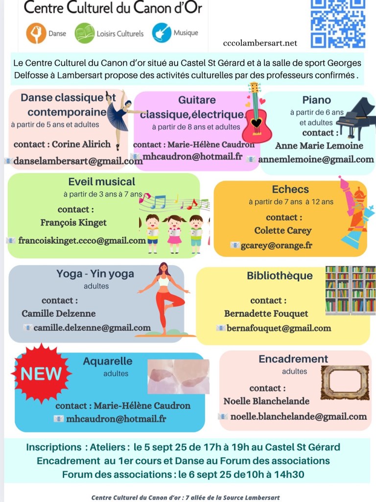 Inscriptions aux ateliers du Ccco – Guitare – Danse classique et contemporaine – Aquarelle – Éveil musical – Piano - Échecs – Yoga – Encadrement – Bibliothèque Publié le 24 août 2025 par cccolambersart Partager : Partager sur X(ouvre dans une nouvelle fenêtre) X Partager sur Facebook(ouvre dans une nouvelle fenêtre) Facebook J’aime chargement… Similaire